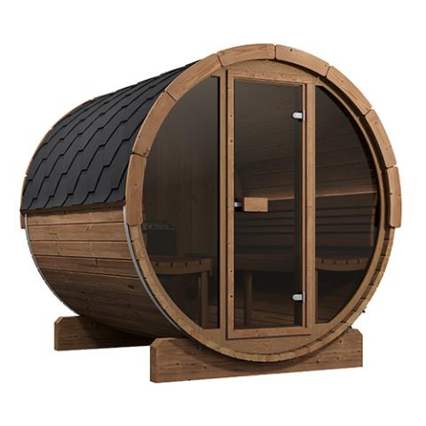 ERGO Series Sauna Barrel, 81"W x 87"D x 85"H, Glass Front, 6-Person