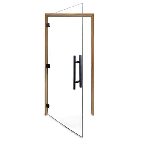 This 36"x81" ADA-compliant handcrafted sauna door from PROSAUNAS is an affordable addition to your home or commercial sauna. These precision-built hinged glass sauna doors will add an elevated level of sophistication to your sauna. Each door is pre-hung for ease of installation, featuring elegant frameless 8mm clear tempered glass and premium-quality thermo-aspen wood jambs and header.