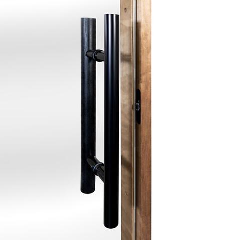 - Ladder Pull Black Stainless Steel Exterior and Black Wooden Interior Handle