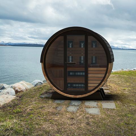 Discover the FD-7, the ultimate Thermo-Aspen barrel sauna that combines the benefits Finnmark’s patented UL-listed Spectrum Plus™ infrared sauna panels with a traditional Finnish rock sauna! Seats up to 4 persons.