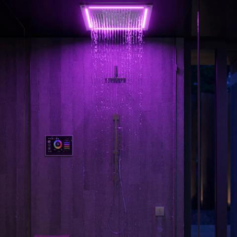 • Straightforward single touch navigation between water, steam, temperature, lighting, sound and ambiance.