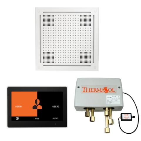 Intelligent design creates immersive bathing with the ThermaSol Wellness Shower Package, complete with the ThermaTouch2 touchscreen control, HydroVive multi-sensory rainhead, and Digital Shower Valve.