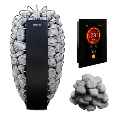 HARVIA SPIRIT HEATER PKG, 9KW, BLACK, XENIO WIFI, ROUND STONES