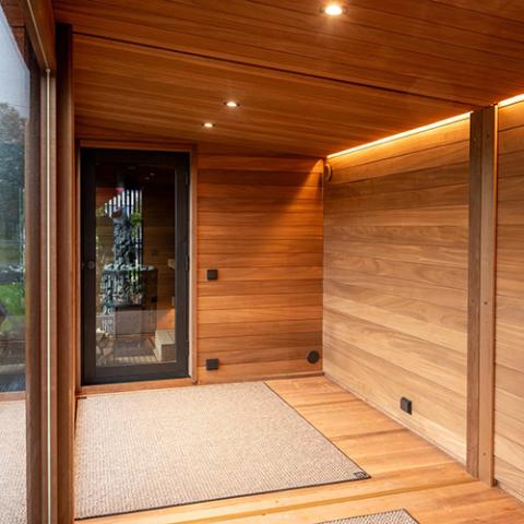 - Nordic dark thermo-spruce exterior for a rich, refined texture and durable weather resistance.