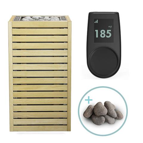 The HUUM CORE Sauna Heater Package comes complete with the CORE Alder Sauna Heater, UKU Control, and Sauna Stones. Designed for flexibility and style, this elegant and powerful unit features premium Alder wood exterior panels for a classy, natural appearance and is engineered for sauna rooms up to 566 cubic feet (CF).