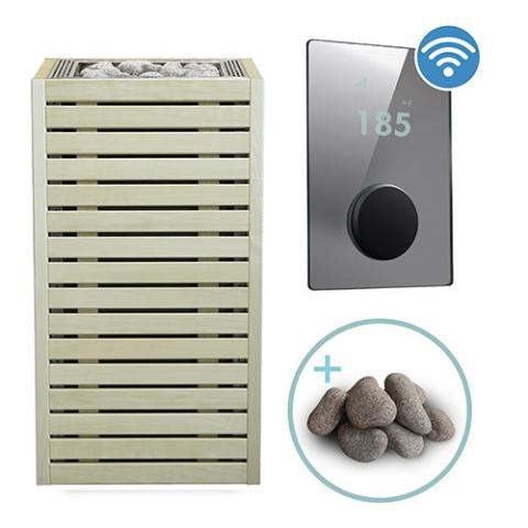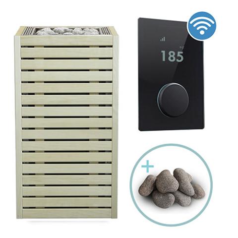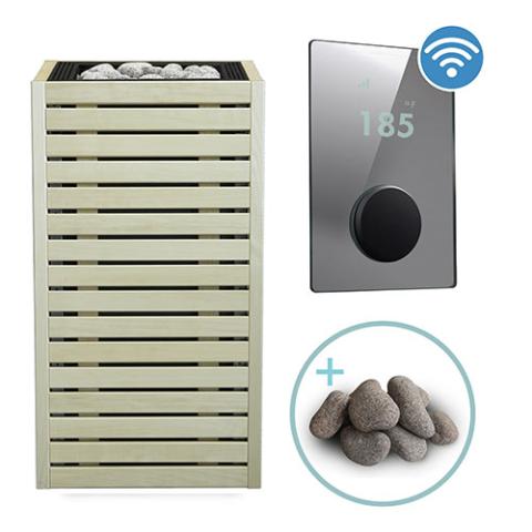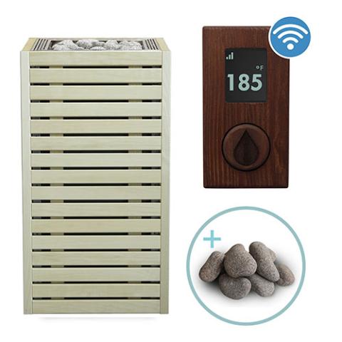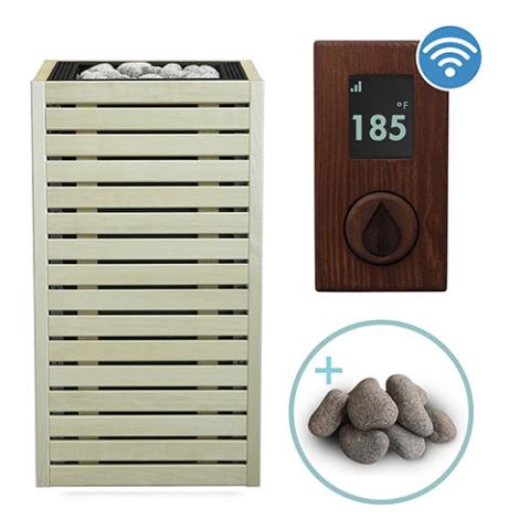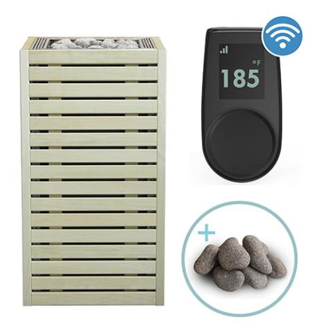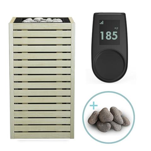 The HUUM CORE Sauna Heater Package comes complete with the CORE Aspen Sauna Heater, UKU Control, and Sauna Stones. Designed for flexibility and style, this elegant and powerful unit features premium Aspen wood exterior panels for an upscale, modern appearance and is engineered for sauna rooms up to 566 cubic feet (CF).