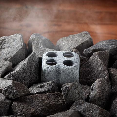 While traditional sauna stones let the water evaporate on the surface of the bricks, the Hukka Höyrykivet Steam Stone features 4 small chambers. The 4 holes act as a reservoir and collects approximately 1.35 oz of water and sauna fragrance oils when in use. As the water starts to gradually warm up, the vapors mixed with fragrance oils are evenly evaporated into the air calmly and continuously.