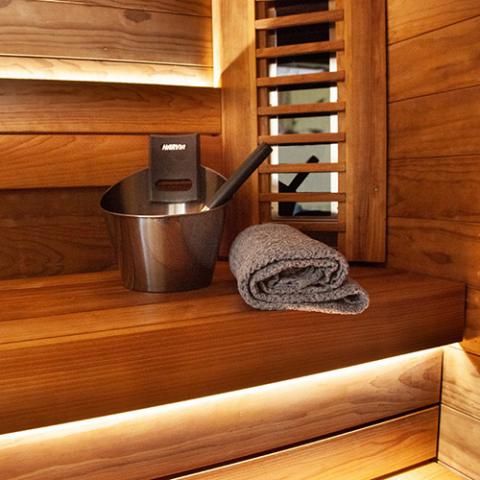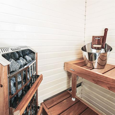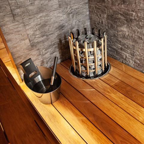 - Durable stainless-steel construction able to comfortably withstand changes in climate for frequent sauna use.
