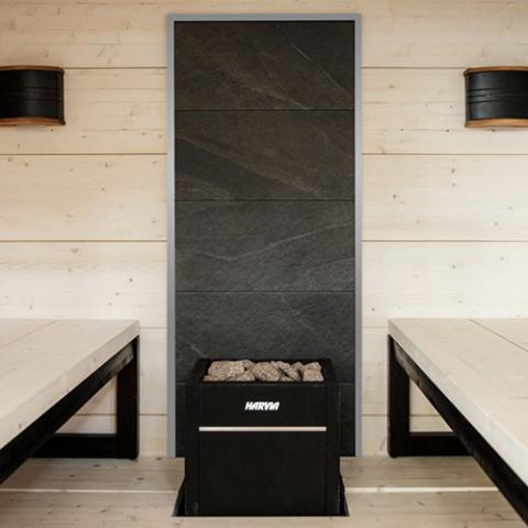 Add a natural decorative element to your sauna cabin with the Harvia Stone Wall, an attractive addition for those looking to emphasize their heater with visual appeal.