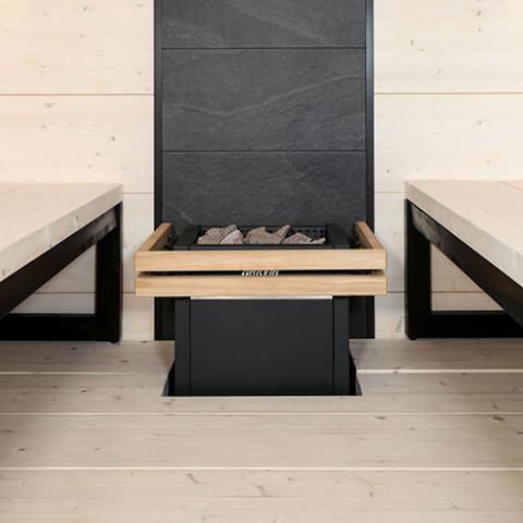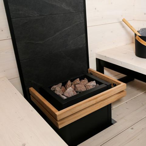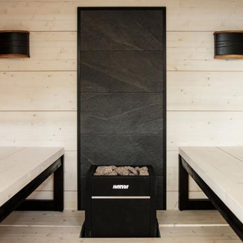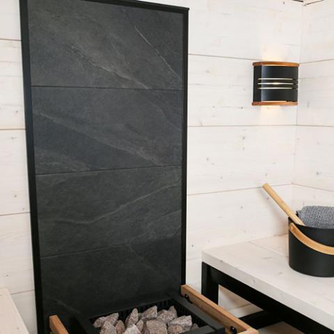 - Implement as a backdrop to emphasize the visual appeal of your sauna heater.