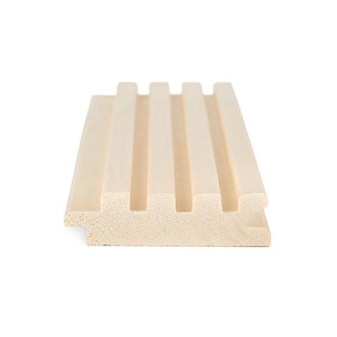 PROSAUNAS Aspen Groove-S 1x3 Wall Cladding brings personality and is recommended for sauna walls and ceilings. Its dramatic, precision-milled fluted slats add an upscale appearance. Aspen is an excellent choice when creating an upscale, contemporary looking sauna.