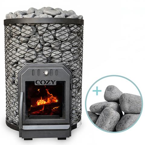 The Cozy Heat O Sauna Stove Package comes complete with the Cozy O Sauna Stove and Sauna Stones. A unique wood-burning sauna stove hand-made in Estonia, where sauna is a way of life. Wood-fired sauna stoves are best for mild and long-lasting heat. Enjoy a satisfying traditional experience in sauna rooms up to 635 cubic feet (CF).