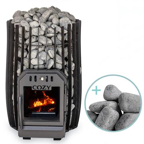 The Cozy Heat SW Package comes complete with the Cozy SW Sauna Stove and Sauna Stones. A dramatic wood-burning stove made in Estonia, where saunas are a national tradition. Wood-burning stoves produce a mild and long-lasting heat and are designed for pouring water over hot stones to create a bracing steam for a more satisfying sauna experience. Elevate your heating experience in sauna rooms up to 635 cubic feet (CF).