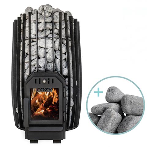 The Cozy Heat SW Through-Wall Sauna Stove Package comes complete with the Cozy SW Through-Wall Sauna Stove and Sauna Stones. With its convenient through-the-wall design, which lets you feed the firebox from outside your sauna, the Cozy SW TW sets the standard in sauna rooms up to 635 cubic feet (CF).