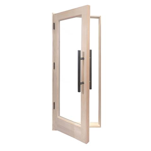 PROSAUNAS robust Douglas Fir Sauna Doors feature dual pane tempered glass for superior insulation, a Hemlock door jamb and header, and self-closing metal hinges. Expertly crafted in America by sauna artisans with premium-quality materials and meticulous attention to detail. Note: Custom jamb depths are available upon request.