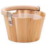 Sauna Bucket, Thermo Laminated Bamboo, Straight Handle, Black Plastic Inner Liner, 5 Liter