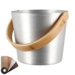 Sauna Bucket, Stainless Steel w/ Birch Wood Curved Handle
